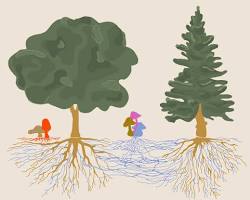 Penelitian oleh Dr. Suzanne Simard menunjukkan bahwa pohon yang lebih tua dan besar—disebut "Pohon Induk"—menggunakan jaringan miselium untuk mengirimkan nutrisi tambahan kepada bibit pohon yang kekurangan cahaya matahari. Jika sebuah pohon sedang sekarat, ia akan mengirimkan sisa energinya ke pohon tetangga melalui jaringan ini agar komunitas hutan tetap lestari.